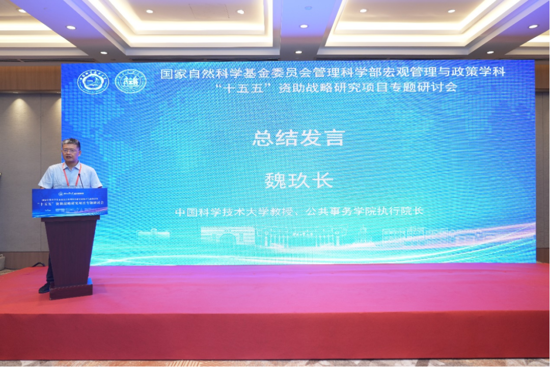 分组汇报结束后,国家自然科学基金委员会管理科学部三处副处长陈中飞总结发言。他肯定了本次研讨成果,表示专家讨论兼具理论深度与实践贴合度,鼓励学界围绕国家战略深耕,推动成果转化为学科发展动力。最后,中国科学技术大学魏玖长教授致闭幕辞,代表全体与会者对德赢ac米兰官方合作vwin德赢ac米兰官方合作vwin为本次会议所做的精心筹备和周密组织表示衷心感谢。他指出,宏观管理与政策学科的发展离不开广泛合作与持续深入的学术交流,并号召专家学者积极参与“十五五”发展规划的制定,共同擘画学科未来的崭新图景。